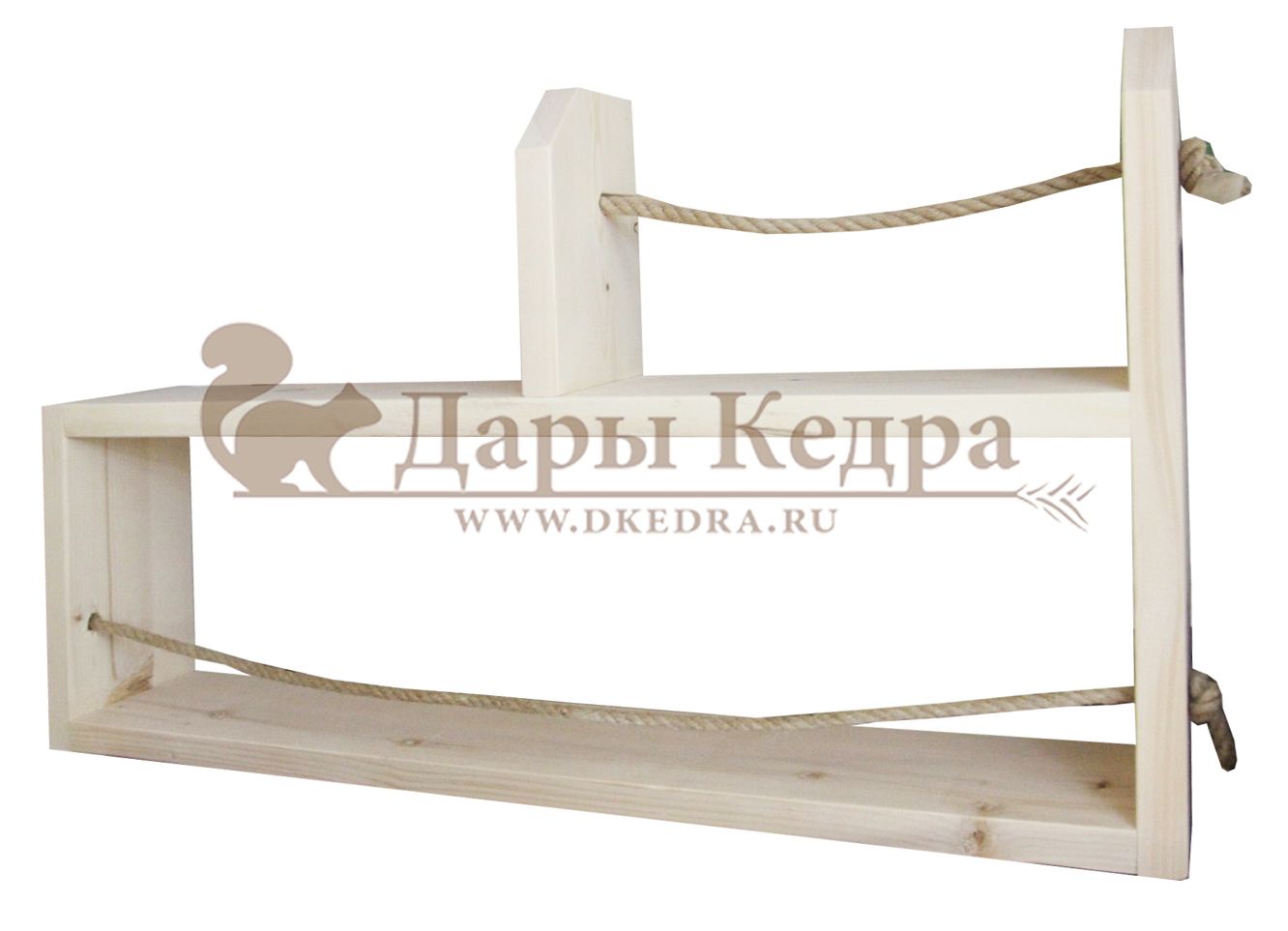 • Полка из кедра с джутовой веревкой Полка из кедра станет оригинальным дополнением и украшением в бане или на даче и даже в ванной и на кухне. А тех, кто любит эко-стиль, наши полки удивят по-настоящему своей продуманностью и функциональностью! В бане: данный вариант полки подойдет для размещения коробок с фитосборами, бутылей с шампунем и других нужных банных предметов. На кухне:компактно разместятся здесь баночки для специй, сыпучих, круп.