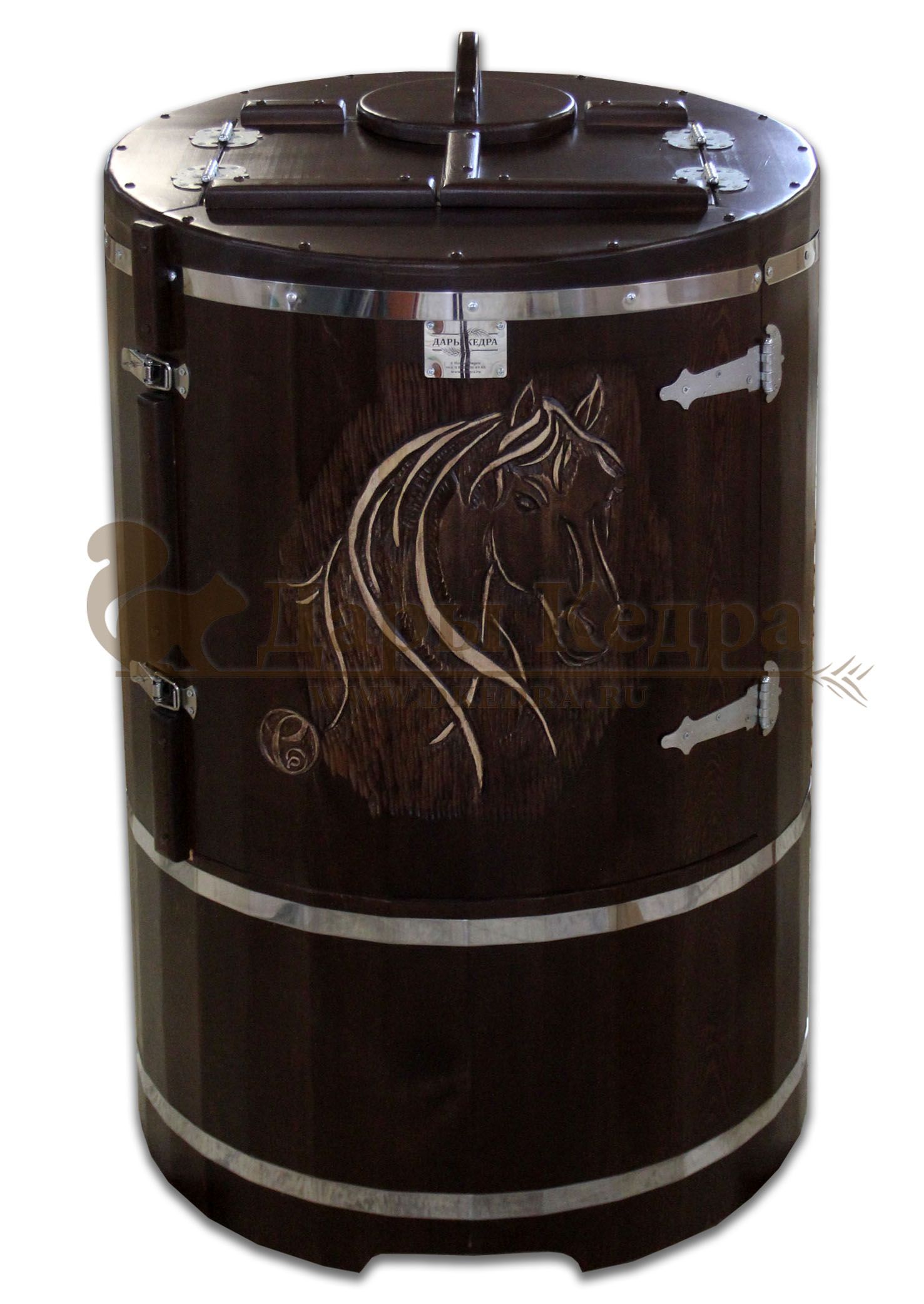 • Кедровая бочка (фитобочка) двухместная «Люкс» Это двухместная модель фитобочки с эксклюзивной резьбой по нашим эскизам или вашим индивидуальным заказам. Выберете один из представленных ниже рисунков или подготовьте свой, и наши мастера перенесут его на изделие. Авторский рисунок на фитобочке придаст оригинальность салону красоты, подчеркнёт вашу индивидуальность и непревзойденный вкус. Художественная резьба это ручная работа, выполняется разными мастерами и каждый рисунок неповторим. Вы можете выбрать предложенные варианты резьбы или подобрать изображение и мы предложим вам подходящий эскиз. На сайте представлены наши работы в качестве примера. Каждая резьба рассчитывается индивидуально и может быть нанесена на любую модель фитобочки. Эксклюзивная фитобочка может быть представлена в разной цветовой гамме: После того, как цвет фитобочки выбран, необходимо определиться с вариантом резьбы (или предложить свой): Фитобочку можно также декорировать канатной веревкой в места обручей из нержавеющей стали (оплачивается дополнительно).